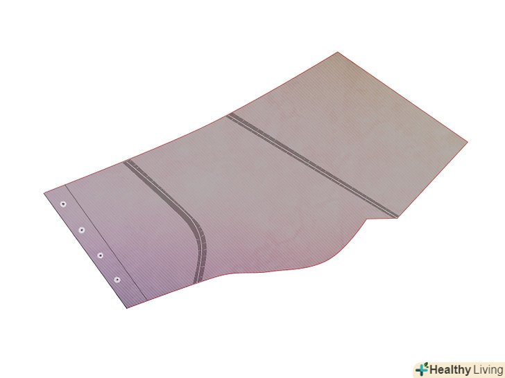 Розкроїте шкіру ножицями. у вас повинно вийти три шматки, які можна зшити. Використовуйте стібки швейної машини від 2,5 до 4.- Не користуйтеся шпильками при шитті, тому що вони залишать дірки на шкірі. Замість цього тримайте шматки шкіри разом і вкладайте в машину. Прошийте назад після шва вперед залишаючи сантиметрову добавку на шви.