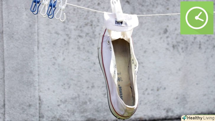 Висушіть кеди на повітрі. "Converse" повинні сохнути на повітрі. Щоб кеди швидше висохли і вибілилися, помістіть взуття в тепле, сонячне і сухе місце.- Завдяки сухому сонячному світлу взуття висохне швидше, до того ж сонячне світло має легкий відбілюючий ефект.