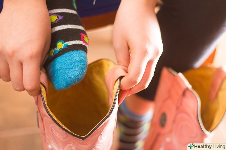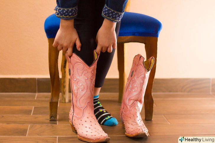 Одягніть тонкі, еластичні шкарпетки, якщо знаєте, що чоботи будуть трохи вузькими в гомілках. Не намагайтеся всунути штанини в чоботи, якщо халяви дуже щільно прилягають до ніг. З часом вони, ймовірно, розтягнуться.