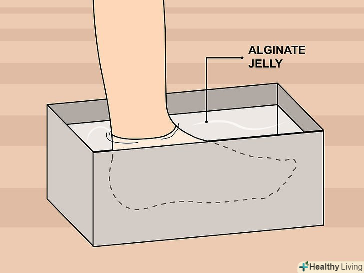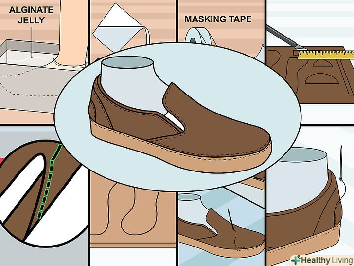 Зробіть колодку за індивідуальними мірками. Колодка-це шматок дерева у формі людської ноги, який майстри з пошиття взуття використовують у своїй роботі. Щоб отримати колодку, вам доведеться зробити зліпок зі своєї ноги. Завдяки цьому взуття буде зшита за вашими індивідуальними мірками. Наповніть ящик зліпочной масою і опустіть туди ногу (в ідеалі до щиколотки). Залиште ногу в ящику на 20 хвилин, щоб маса застигла, а потім обережно дістаньте ногу. [2]- Робіть все повільно, щоб не пошкодити застиглу масу.