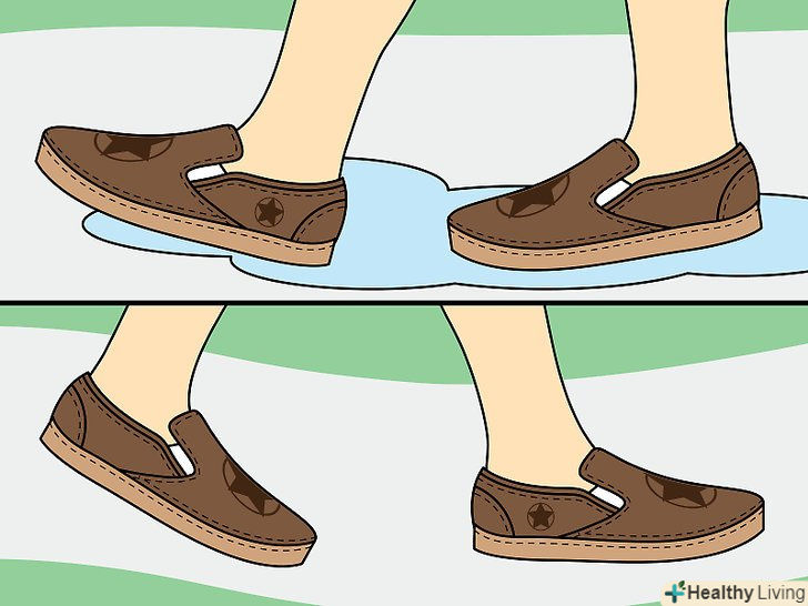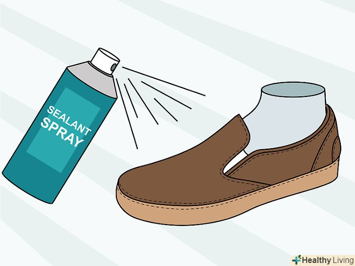 Зробіть черевики водонепроникними за допомогою герметика у формі спрею. Натуральна шкіра сама відштовхує воду, однак вам слід зробити все можливе, щоб вода не потрапила всередину. Спробуйте придбати недорогий спрей-герметик і ретельно обробити черевики, особливо якщо у Вашому регіоні часто бувають опади. [7]