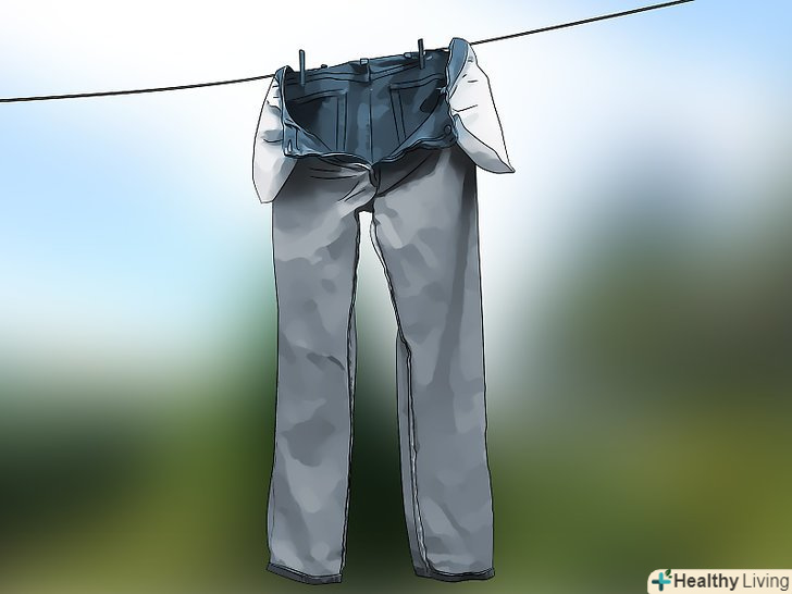 Повісьте джинси висихати. Сушка джинсів в сушарці призведе до закріплення залишилися плям, що значно ускладнить видалення жиру. Після закінчення прання витягніть джинси з пральної машини і розвісьте їх на білизняний мотузці.