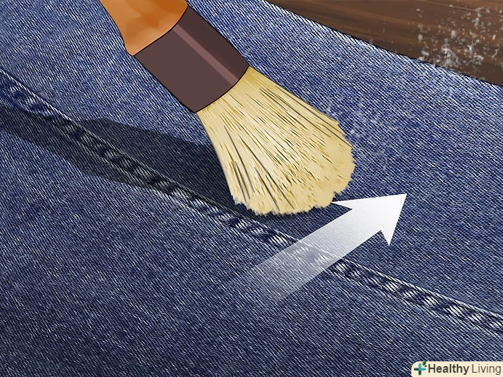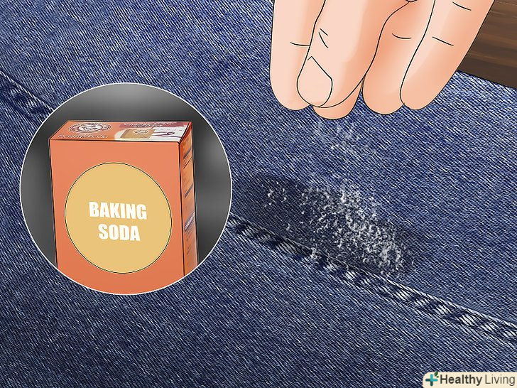 Обробіть пляму содою. після того як ви приберете жир, покрийте всю поверхню масляної плями харчовою содою. Розкладіть джинси на рівній поверхні і залиште як мінімум на 1 годину. Фарбування соди в жовтий колір означатиме, що вона ефективно витягнула з джинсів частину жиру. [1]- Якщо у вас немає соди, посипте пляму кукурудзяним крохмалем. [2]