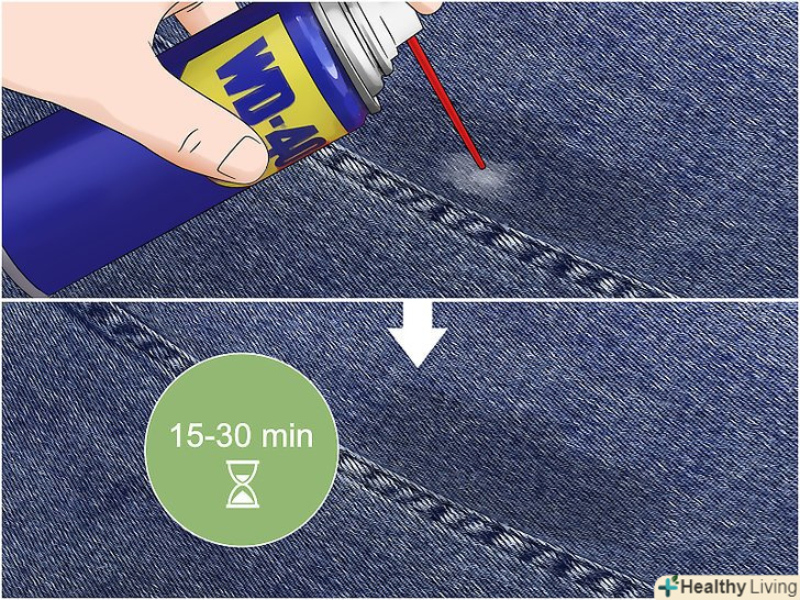 Якщо у вас немає WD-40, використовуйте лак для волосся. як і WD-40, лак для волосся дозволить видалити більшу частину масляної плями. Направте розпилювальну насадку на масляні плями і покрийте їх цілком лаком для волосся. Відкладіть джинси на кілька хвилин. [5]