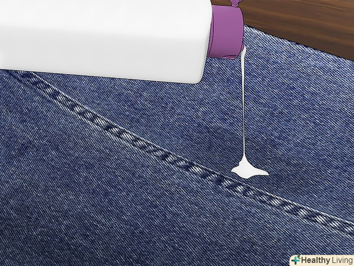 Промийте ділянку гарячою водою. віднесіть джинси в раковину або ванну і промийте їх гарячою водою. Тримайте джинси під водою і споліскуйте пляму, поки не змиєте всю мильну піну.
