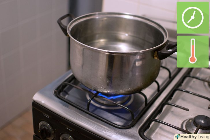 - Додайте у воду фарбу. коли вода закипить, необхідно додати в неї фарбу. Додайте фарбу у воду відповідно до інструкцій виробника, а потім перемішайте розчин до однорідного стану. Залиште розчин кипіти ще на 5 хвилин. [11]