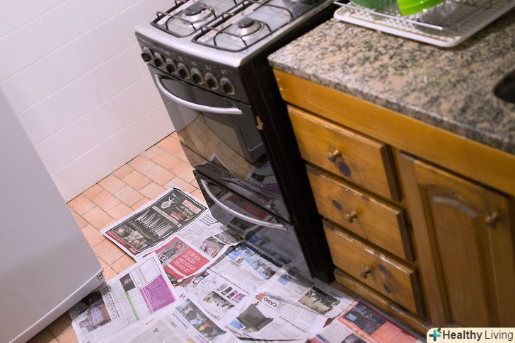 Застеліть робочий простір. при роботі з такою темною фарбою, як чорна, необхідно обов'язково застелити робочий простір, щоб випадково не наставити плям навколо. Візьміть одноразові поліетиленові скатертини і застеліть ними стільницю, простір навколо плити і підлогу на той випадок, якщо ви ненавмисно проллєте фарбу. [8]- Якщо у вас немає одноразових скатертин, візьміть звичайний поліетилен або навіть сміттєві пакети, щоб застелити робочий простір.