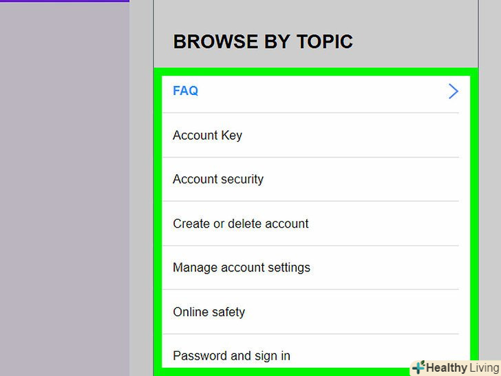 Виберіть продукт.у меню виберіть продукт, з яким у вас проблеми. Відкриється сторінка з інформацією про продукт.- Наприклад, щоб отримати допомогу з обліковим записом, натисніть "Account" (Аккаунт).