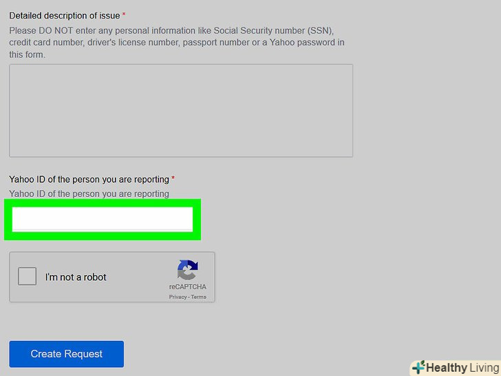 Введіть адресу електронної пошти Yahoo людини, яка розсилає спам або переслідує вас.зробіть це в полі " Yahoo ID of the person you are reporting "(електронна адреса людини, про яку ви повідомляєте).- Перевірте, чи правильно ви ввели цю адресу, тому що через невірну адресу можуть заблокувати іншу людину.