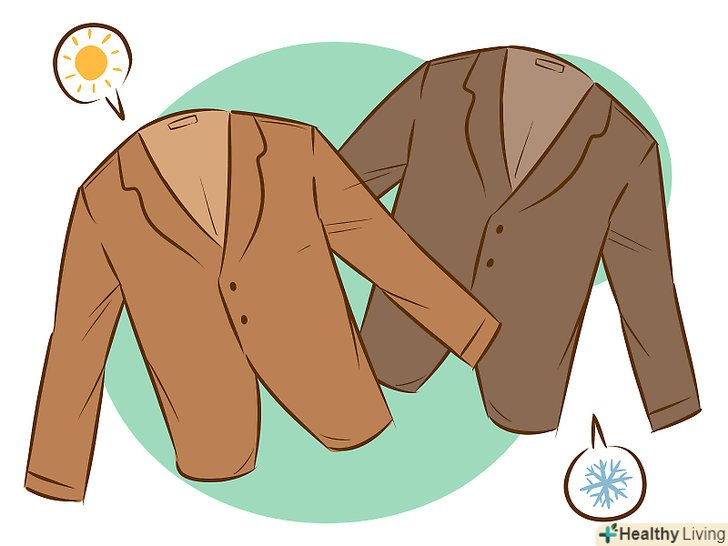 Виберіть відповідну вагу куртки по сезону. Спортивні куртки бувають літньої і зимової тяжкості, і поширені протягом будь-якого сезону. У спортивних куртках можна комбінувати офіційність і розваги. Придбання спортивних курток, які можна використовувати протягом декількох сезонів, допоможе вам відчувати себе комфортно.- Бавовняні спортивні куртки призначені для літнього періоду. Ймовірно, ви б не хотіли опинитися в вовняній куртці в саму спеку. Бавовна добре дихає і здорово виглядає на тілі, незважаючи на те, що це досить важкий предмет одягу.
