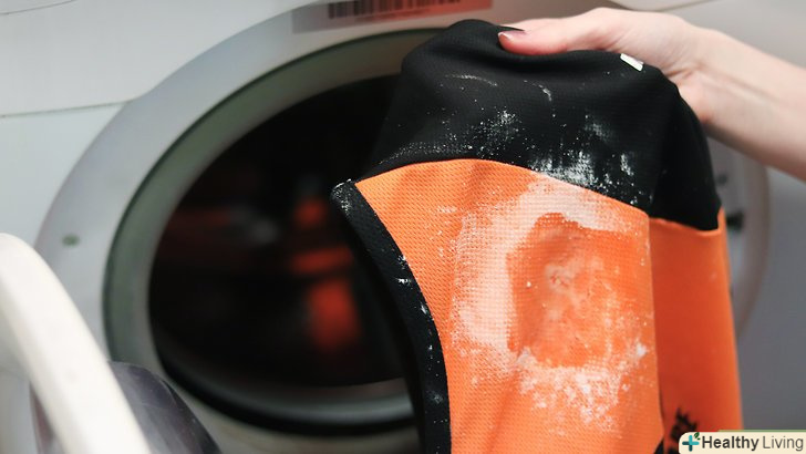 Виперіть річ в пральній машині згідно з вказівками на ярличку. не потрібно заздалегідь змивати рідину для миття посуду, вона вимиється під час прання. [9]