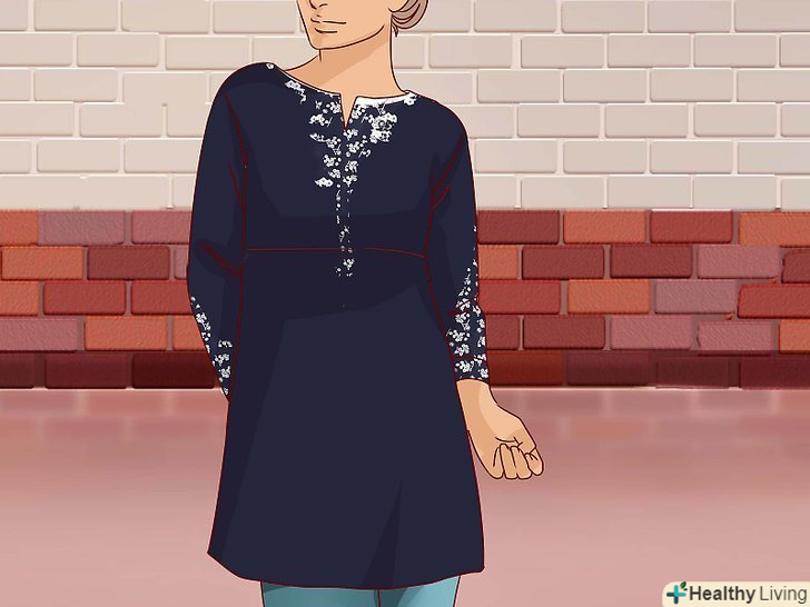 Виберіть топ для вагітних. Топи для вагітних мають такий крій, який підкреслює красу вагітної жінки і дарує комфорт одночасно. [2] постарайтеся не носити мішкуваті сорочки — краще вибирайте одяг, що підкреслює особливості вашої фігури. [3] вибирайте топи по фігурі або топи в стилі ампір (із завищеною талією), які підкреслюють ваші форми.