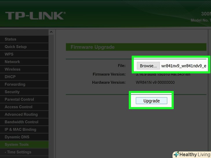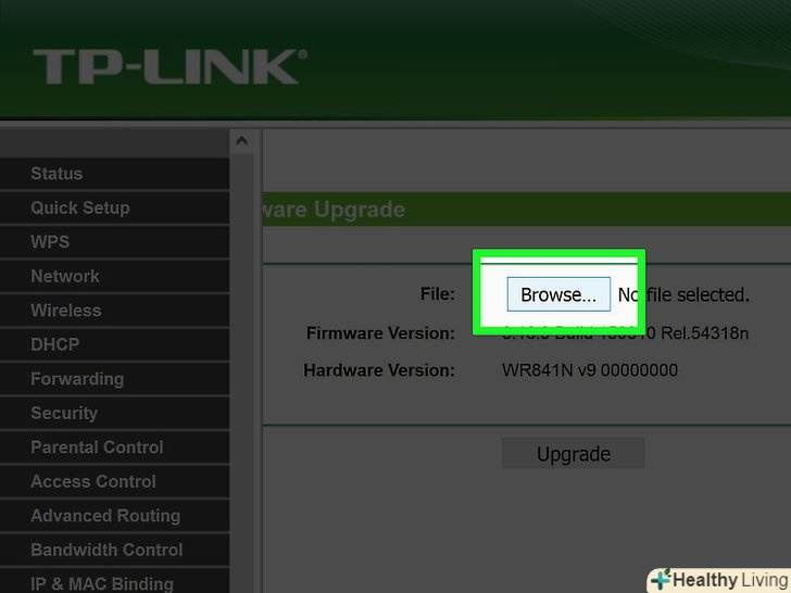 Завантажте файл на маршрутизатор.поверніться на сторінку конфігурації, натисніть «Choose File» (вибрати файл) і перейдіть до витягнутого файлу. Виберіть його, а потім натисніть " Upload "(завантажити) на сторінці конфігурації маршрутизатора.