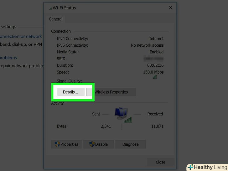 Натисніть кнопку "Відомості" у вікні.відобразяться відомості про мережу.