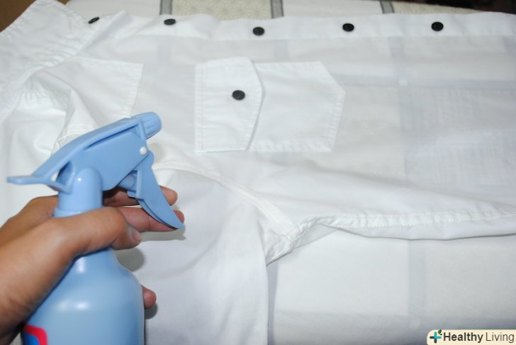 Розпиліть крохмальний розчин на спинку сорочки. працюйте в добре освітленому місці, ретельно покривайте розчином всю поверхню. Зачекайте пару секунд, поки розчин вбереться в тканину, і гладьте праскою, розігрітим до температури, зазначеної на ярлику сорочки.