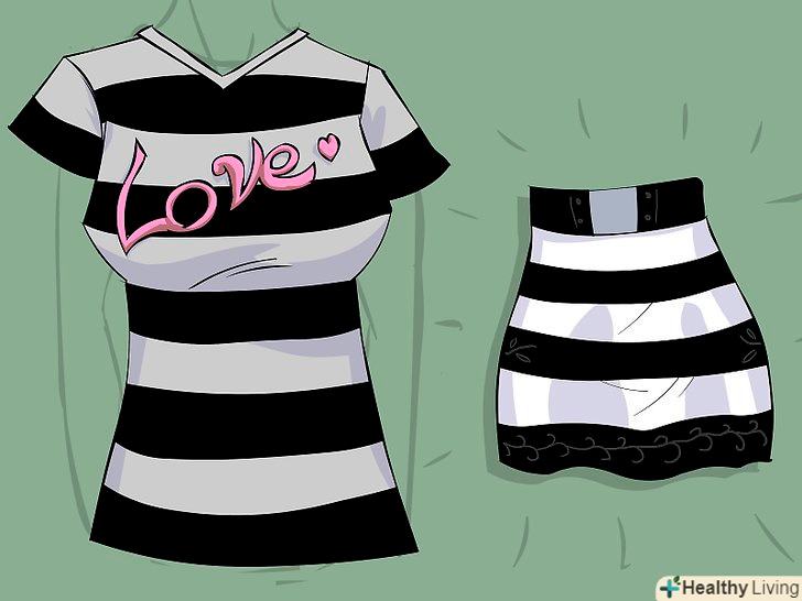 - Можна надіти молодіжну футболку з графічним принтом і викликає написом. Або картату сорочку, сорочку в горошок або зі стразами. Деякі вважають за краще носити візерункові спідниці до колін, але через текстуру тканини краще залишити помітні орнаменти для сорочки.