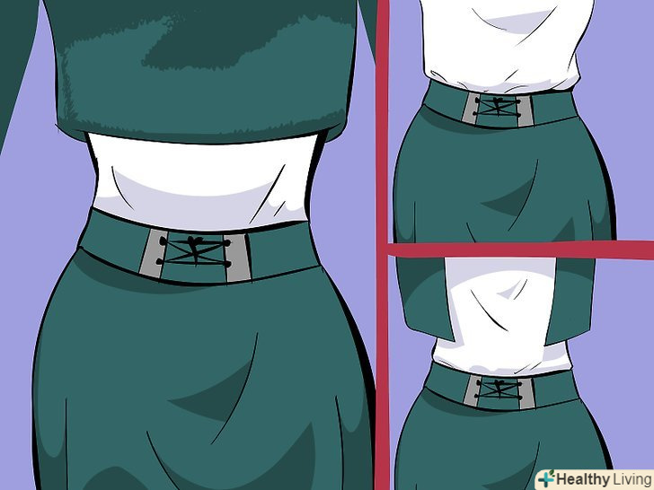 Носіть пояс. носіння пояса є одним із способів зробити ваш образ зі спідницею до колін дійсно класним. Це відверне увагу від Подолу спідниці назад до вашої талії.- Деякі люди вважають за краще надягати широкий пояс зі спідницею до колін. Ви можете спробувати вибрати широкий пояс незвичайного кольору, наприклад, гірчичного. [7]