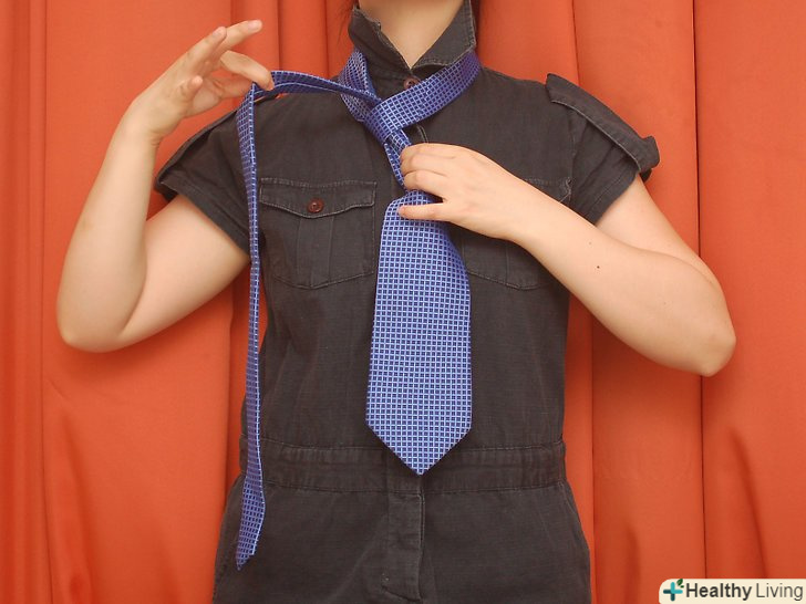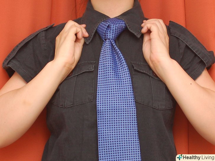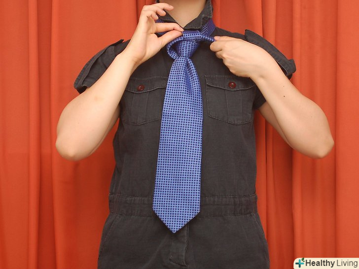 Потягніть за тонкий кінець краватки і акуратно складіть вузол.