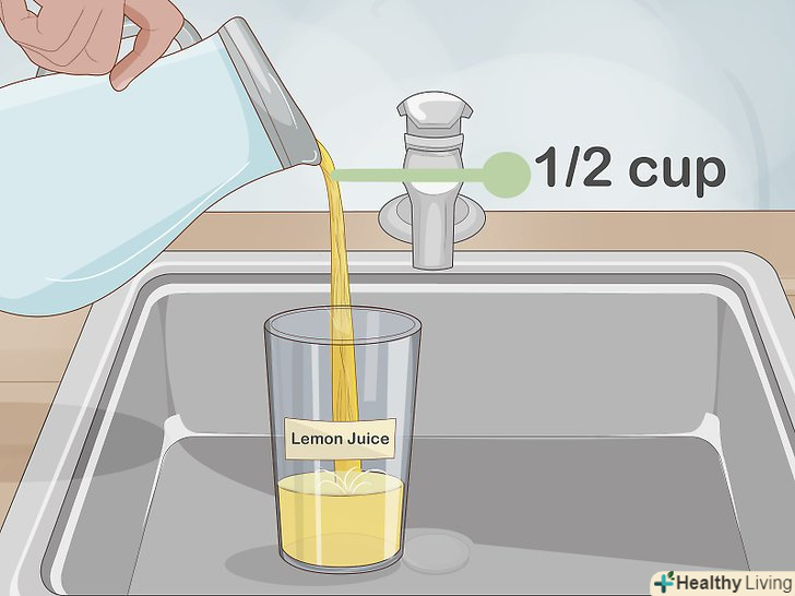 - Потім налийте ¾ склянки відбілювача