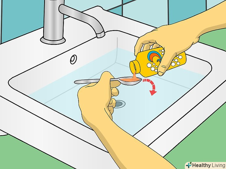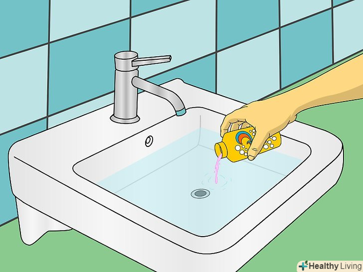 Налийте в раковину трохи засобу для миття тіла і рідкого миючого засобу.