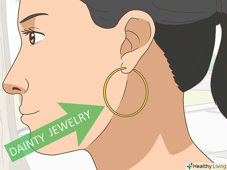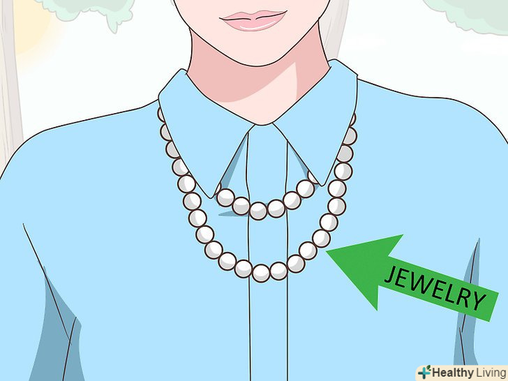 Надіньте витончену біжутерію. замість використання перлів і дорогоцінних каменів, зупиніть свій вибір на простий золотому ланцюжку, кидком кільці і парі невигадливих золотих сережок у вигляді кілець. Все це допоможе зробити наряд більш спокійним і не дозволить перевантажити образ.- Одна з найважливіших складових в доданні біжутерії простоти полягає у виборі тільки одного елемента, який слід підкреслити. Зробіть вибір між помітним кільцем, кольє або сережками, але не робіть помітним все відразу.