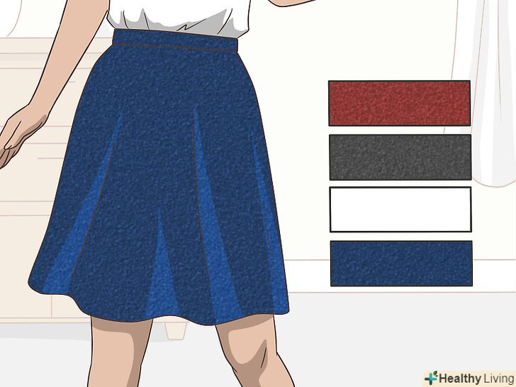 Використовуйте кольори, які відповідають вашому повсякденному стилю. щоб оксамитова спідниця виглядала неформально, вона повинна поєднуватися за кольором з кольором речей, які вже є у вашому гардеробі. Якщо у вас багато речей кольору дорогоцінних каменів, виберіть в такому ж тоні оксамитову спідницю. Якщо ви більше схильні до нейтральних тонів в одязі, купіть спідницю нейтрального кольору. [7]- Відповідність спідниці вже існуючому гардеробу зробить підбір комплектів одягу більш швидким і легким.
