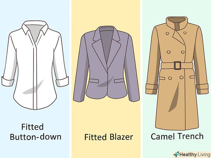 Комбінуйте оксамитову спідницю з класичними моделями верху. щоб підкреслити розкіш і формальний стиль оксамиту, поєднуйте спідницю з такими класичними моделями верху, як облягаюча блузка на ґудзиках, облягаючий блейзер або бежеве пальто. Кожна з цих речей буде надавати вашому поряд класичний офіційний образ без шкоди для стилю і смаку. [2]- Предмети одягу класичного стилю особливо корисні для офіційних офісних нарядів. Проста блузка на ґудзиках дозволить вам зберегти офіційний стиль і не виглядати занадто ошатно для свого робочого місця.