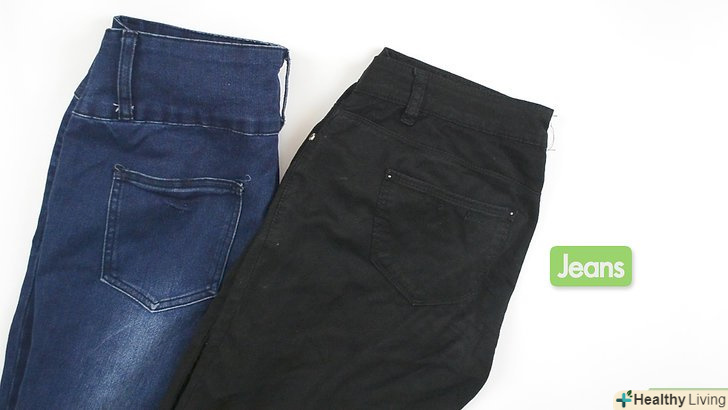 - Дізнайтеся фактичний розмір талії. щоб отримати точні дані, виміряйте не тільки талію штанів, але і свою талію теж. Виміряйте талію в нижній білизні або в аналогічній щільно прилеглій одязі. Виміряйте обхват талії. Це найтонша частина вашого тіла, яка знаходиться між ребрами і пупком. Щоб знайти талію, зігніться в сторону і подивіться, де на вашому тілі утворюються складки. Оберніть мірну стрічку навколо талії і запишіть вимірювання в тому місці, де зустрічається стрічка. Подивіться на свої виміри, стоячи прямо. Для цього скористайтеся дзеркалом. [3]