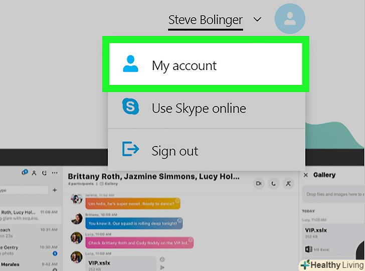 Клацніть по своєму імені. воно знаходиться у верхньому правому куті екрану. Відкриється випадаюче меню.- Якщо вам потрібно було увійти в Skype, пропустіть цей і наступний кроки.