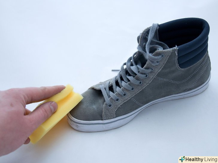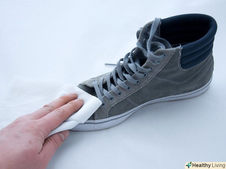 Зітріть цвіль. змочіть водою м'яку ганчірку або губку і акуратно розітріть по матеріалу вазелін або засіб для чищення замші. Щоб вивести більш стійкі плями, використовуйте спиртовий розчин.- При необхідності повторіть процедуру, проте не прикладайте зусиль в тому випадку, якщо пляма не змивається. При необережному поводженні можна пошкодити матеріал. [3]