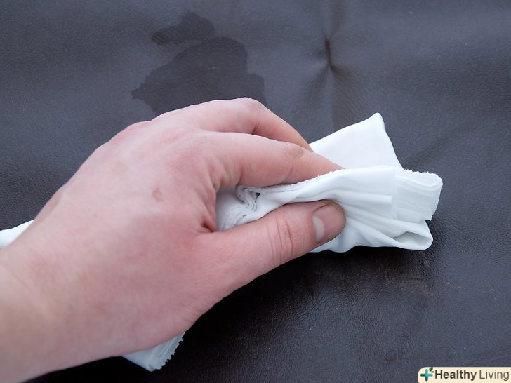 Витріть шкіру. Візьміть ще одну вологу ганчірку і витріть з шкіри мило. Повністю видаліть з матеріалу залишки мила. Не прикладайте до шкіри великий тиск, щоб не пошкодити її. [16]