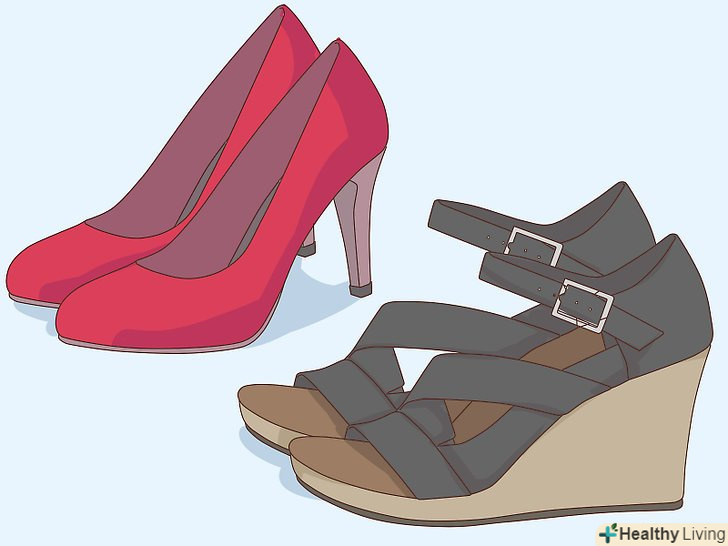 Разом з кроп-топом надіньте високі підбори або туфлі на танкетці. для приємної вечірки обов'язковою умовою будуть туфлі на високих підборах або на танкетці тілесного або відповідного під кроп-топ кольору. [8]