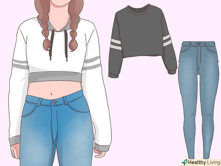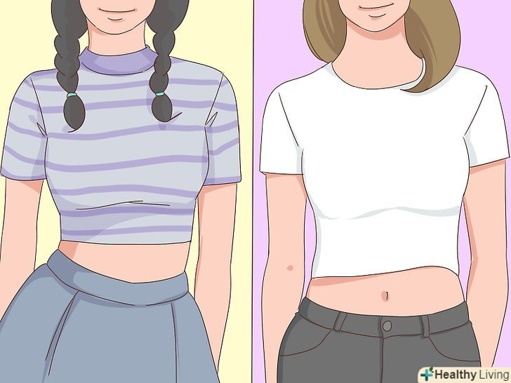 Підберіть крій топа. облягаючий кроп-топ найкраще виглядає з більш вільними штанами або спідницею, хоча на вечірку його також можна надіти і з обтягуючим низом. Більш повсякденні, вільні топи-футболки або майки красиво виглядають в поєднанні з джинсами або шортами із завищеною талією і створюють формальний або більш вуличний образ.