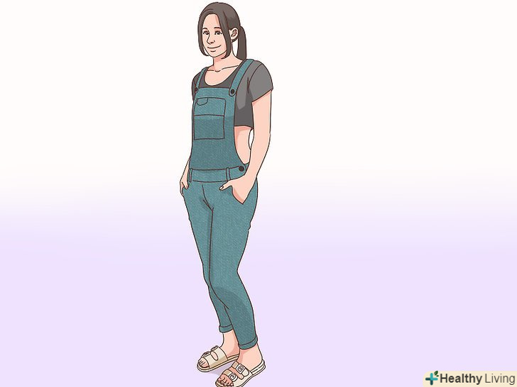 Створіть багатошаровий грайливий образ з коротким топом і комбінезоном. розстебніть бічні гудзики комбінезона, щоб продемонструвати боки в трохи старомодному, скромному і привабливому образі. Якщо дивитися спереду, то не можна сказати точно, чи надітий на вас кроп-топ! [4]