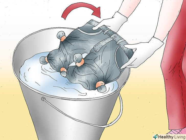 Опустіть джинси (спершу занурюйте пояс і верхню частину) в воду з відбілювачем. Тримайте в відрі від 30 до 60 хвилин, залежно від того, чи хочете ви, щоб ваші джинси були темнішими або світлішими.