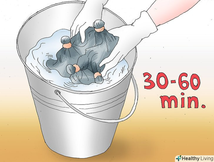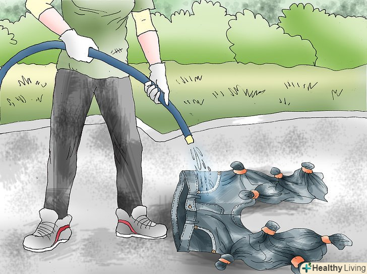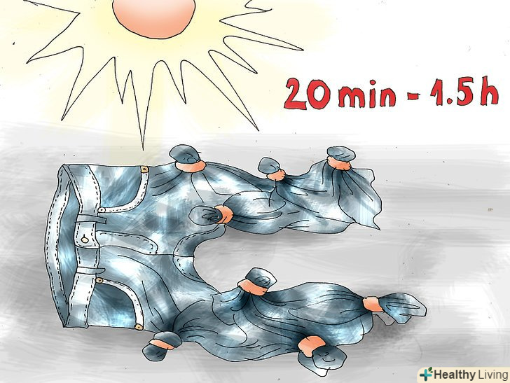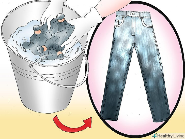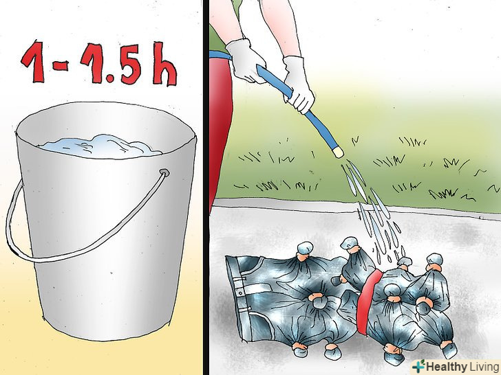 Діставайте джинси з відра через 1-1,5 години. розкладіть їх на тротуарі або гравійній доріжці. Злегка промийте садовим шлангом..