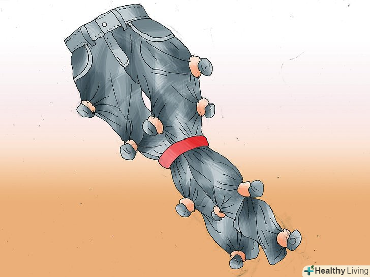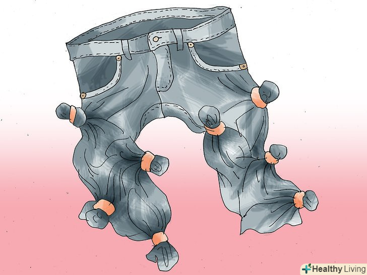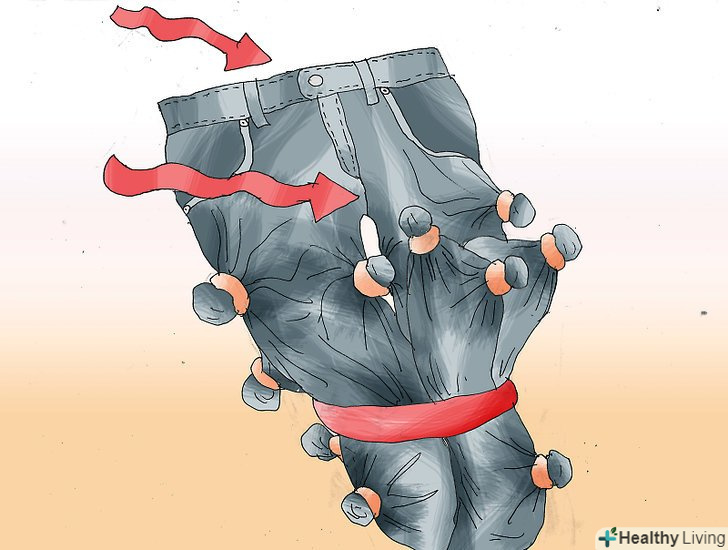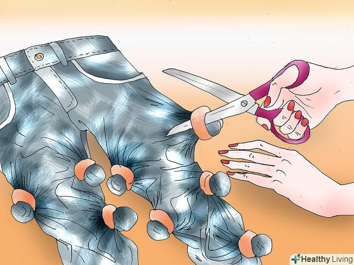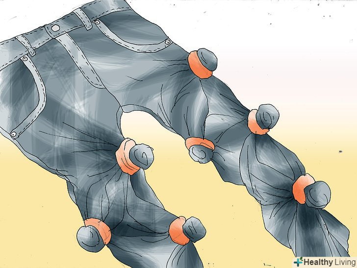 Візьміть пару джинсів . зберіть в пучок деякі області, потім оберніть їх гумками. Це створить тай-дай ефект.