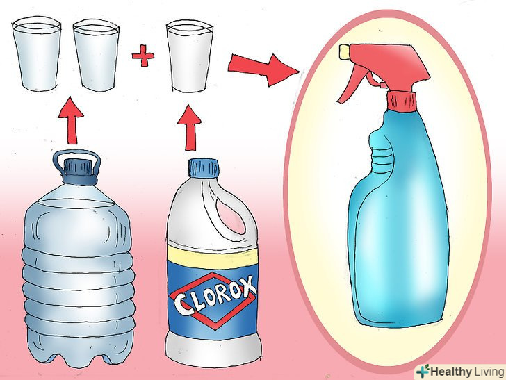 З'єднайте 2 частини води на 1 частину відбілювача в пляшці з розпилювачем.- Ви можете приготувати більш сильну відбілюючу суміш, змішавши воду і відбілювач 1 до 1; однак, це, можливо, роз'їсть вашу тканину.