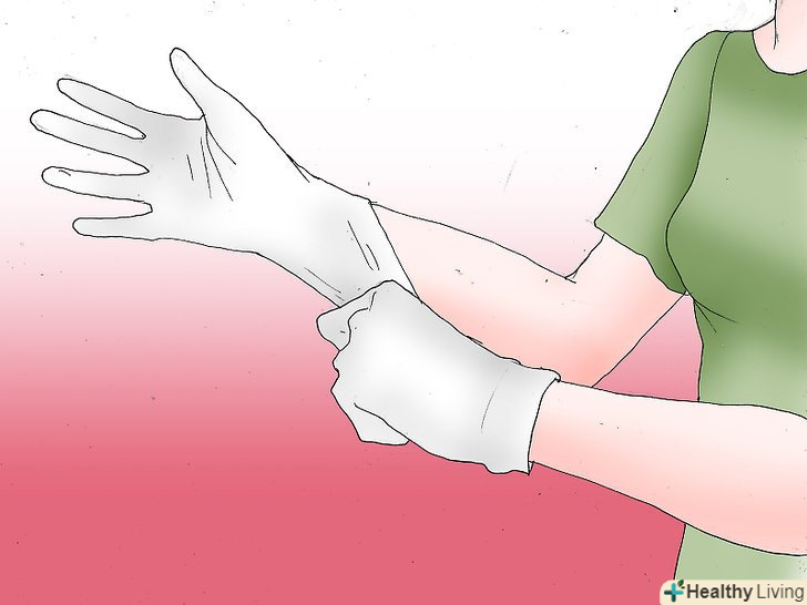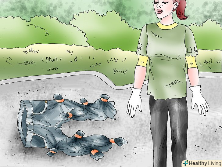 Розкладіть ваші джинси на вулиці на бетоні або металевій плитці. одягніть старий одяг і гумові рукавички.- Не кладіть джинси поруч з травою або рослинами, так як відбілююча суміш їх вб'є.