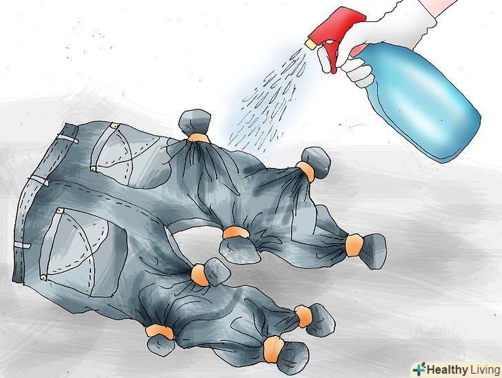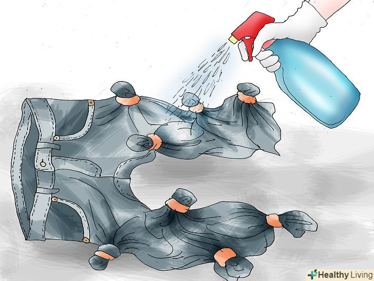 Переверніть джинси і повторіть те ж саме з іншою стороною.- Переконайтеся, що ви використовували розпилювач в достатній мірі в зонах, пов'язаних гумками.