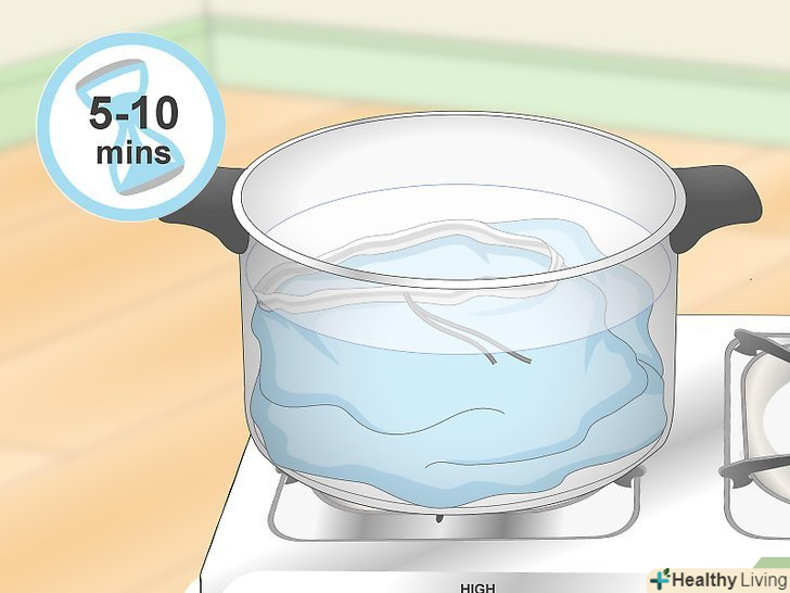 Залиште спортивні штани на 5-10 хвилин в гарячій воді. після того, як ви вимкнете вогонь, залиште спортивні штани у воді, щоб тепло могло подіяти на тканину. Для досягнення максимальних результатів залиште штани у воді на 20 хвилин. [13]- Щоб зберегти тепло, накрийте каструлю кришкою, поки в ній замочуються ваші штани.