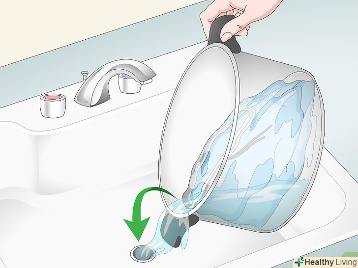 Вилийте вміст каструлі в друшляк або раковину. Не суньте руки в каструлю, так як вода все ще буде досить гарячою і може обпалити вас.- Залиште спортивні штани на кілька хвилин в друшляку або раковині, щоб вони могли охолонути, і тільки потім діставайте їх.