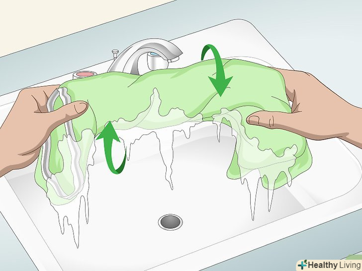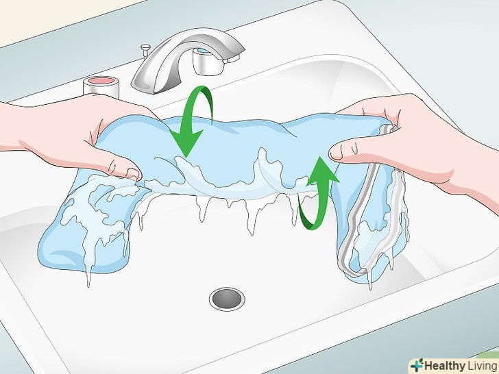 Вичавіть воду з спортивних штанів над раковиною. Візьміть спортивні штани в руки і гарненько стисніть тканину. Видавіть з штанів якомога більше води, перш ніж покласти їх в сушарку або повісити на білизняну мотузку.- Не викручуйте штани, так як це може привести до повторного розтягування тканини. [14]