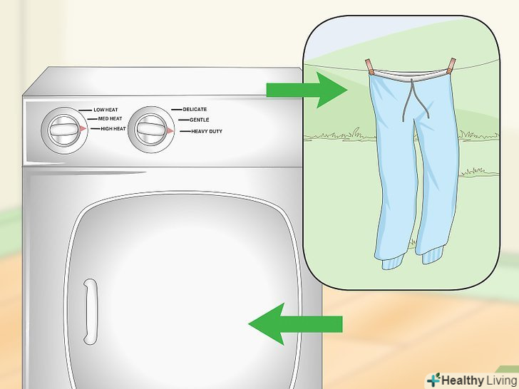 Дістаньте спортивні штани та інші предмети і покладіть їх в сушарку. щоб Спортивні штани сіли, вони повинні перебувати в постійному теплі. З цієї причини не рекомендується залишати їх надовго в пральній машині після завершення циклу прання. [7]- Якщо деякі предмети ви не хочете висушувати в сушильній машині, вийміть їх і розвісьте на білизняний мотузці, щоб вони висохли на повітрі.