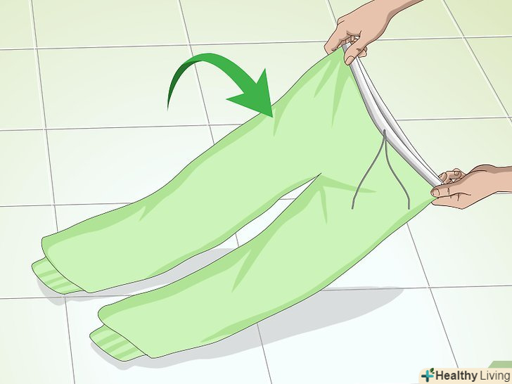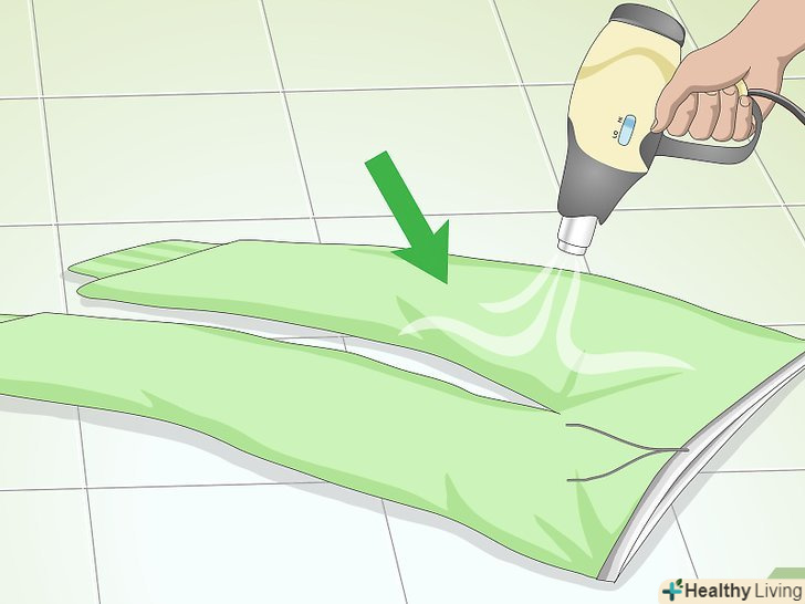 Покладіть спортивні штани на плоску, захищену від впливу тепла поверхню. це може бути кахельна підлога у ванній кімнаті або на кухні, тераса, прасувальна дошка або верхня частина пральної або сушильної машини. [18]
