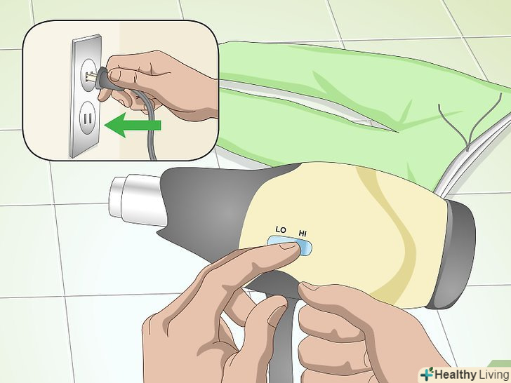 Включіть фен в розетку і виставте на ньому найвищу температуру. деякі фени мають тільки один режим, тоді як У інших можна налаштовувати температуру і потужність. [19] візьміть краще той, що має кілька варіантів нагріву, оскільки це дозволить вам використовувати більш високу температуру для сушіння брюк.