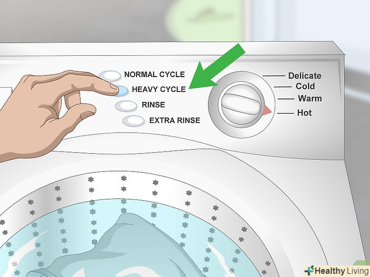 Налаштуйте пральну машину на максимально тривалий цикл прання. багато пральних машин мають» інтенсивний " цикл прання, який, як правило, є найдовшим циклом. [6] якщо у вашої пральної машини немає цієї опції, виставте «звичайний» цикл або режим «синтетика».