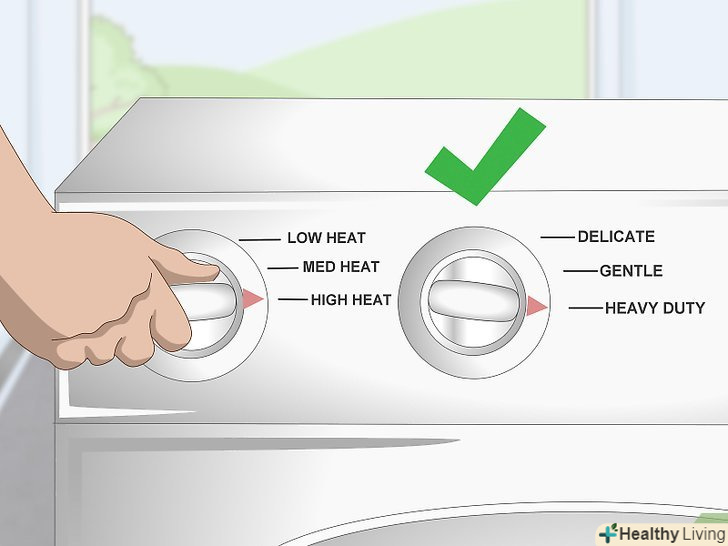 Виберіть найгарячіший режим і найтриваліший час сушіння. залежно від використовуваної сушильної машини, вам потрібно буде вибрати режим «звичайна/інтенсивна сушка». [8] деякі сушарки обладнані циферблатом, на якому потрібно виставити «сухе» або "дуже сухе" в розділі, який призначений для бавовни та інших предметів, які можна прати в гарячій воді.- Якщо ви залишитеся незадоволені результатами, продовжуйте повторювати процедуру, поки спортивні штани не всядуть до бажаного розміру.