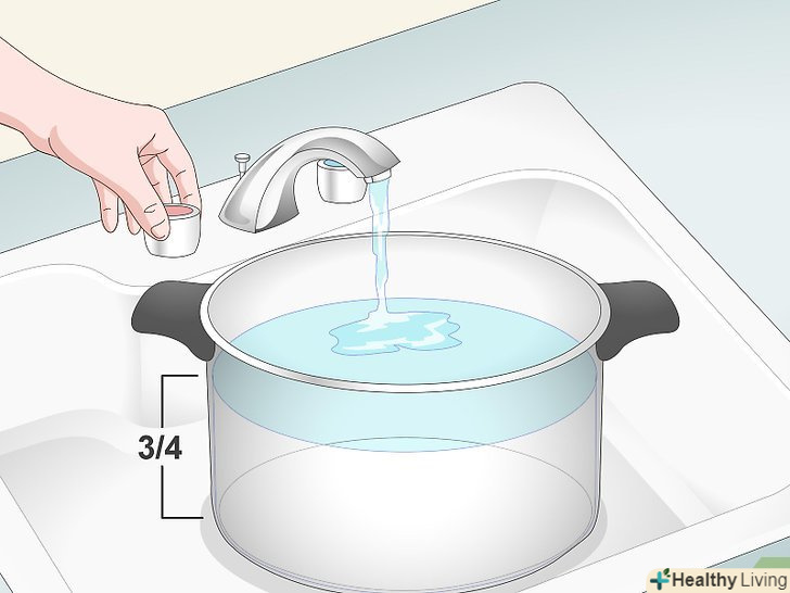 Наповніть велику каструлю водою приблизно на¾. води повинно бути достатньо, щоб в неї можна було повністю занурити спортивні штани. Каструля також повинна бути достатньо великою, щоб вода не перелилася через край, коли ви опустите в неї штани. [9]