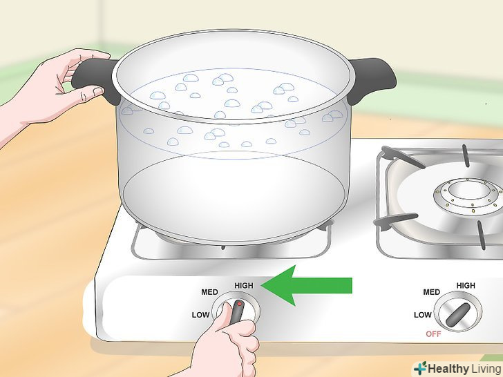 Поставте каструлю з водою на сильний вогонь і доведіть до кипіння. коли мова йде про усаджування одягу в киплячій воді, то чим вище температура, тим краще. Висока температура зніме напругу з ниток, з яких складається тканина, змушуючи їх стискатися. [10]- Ви зрозумієте, що вода закипіла, коли на поверхню почнуть швидко підніматися великі бульбашки, а помішування води не перерве кипіння. [11]